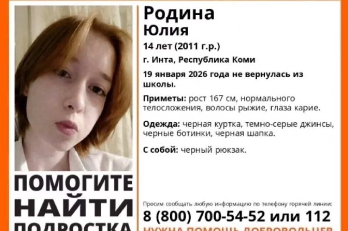 «В правоохранительные органы поступила информация о том, что 19 января текущего года 14-летняя жительница города Инты после школы не вернулась домой», — рассказали в СК по Коми.